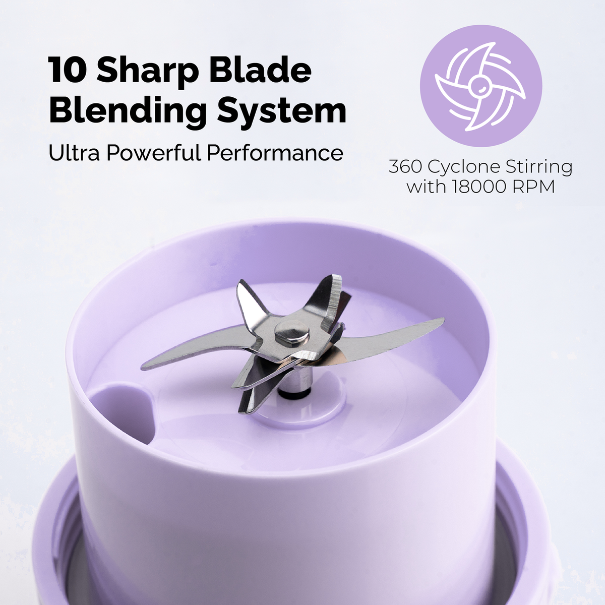 • Cleaning: After use, rinse the blender with warm water. For thorough cleaning, use a few drops of dishwashing liquid and blend for 1-2 cycles.