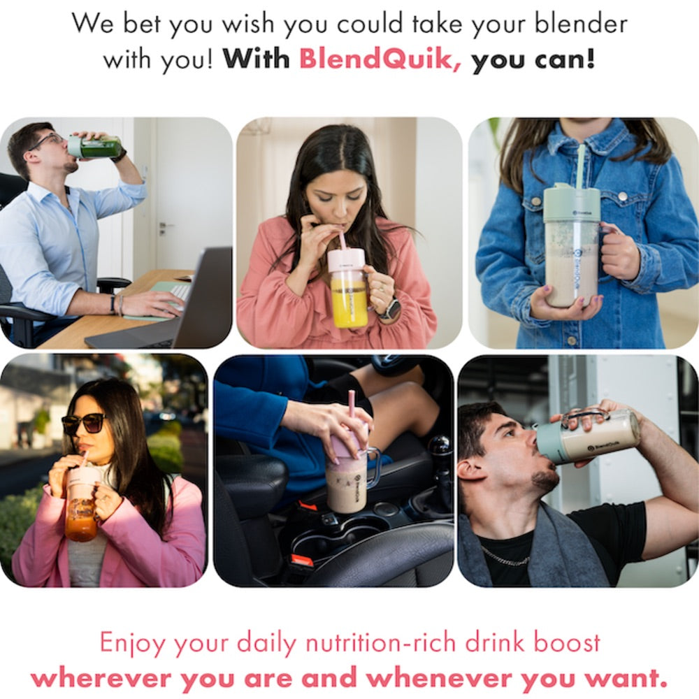 - Sleek, Stylish and Chic: What makes BlendQuik™ different? It's Mason Jar-Style Ergonomic Design. Create your own fashion statement while staying on the go, with zero compromises on your healthy lifestyle.